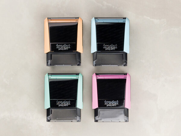 TRODAT Printy 4911P4 stamp is designed with a modern, beautiful, compact, and colorful style. The stamp has a sturdy clasp; the stamp ink pad has 2 latches on both sides for easy removal and installation, limiting fingers from touching the ink tampon layer causing stains; the transparent bottom edges of the stamp allow for precise alignment of the position.