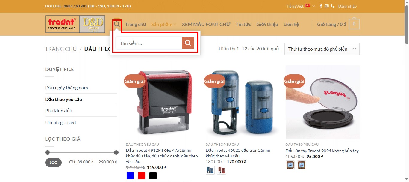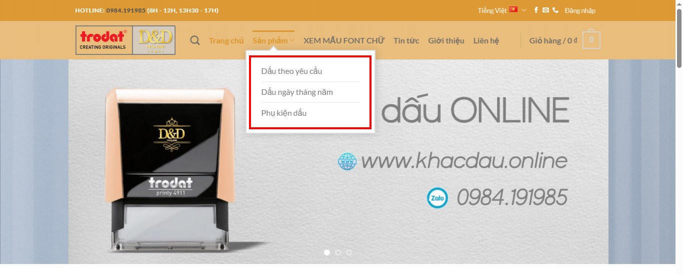 1. Chọn danh mục sản phẩm trong Menu sản phẩm.